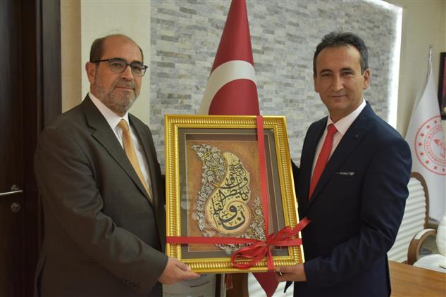 24 Kasım Öğretmenler Günü vesilesiyle İl Müftüsü Faruk Gürbüz, İl Milli Eğitim Müdürü Mehmet Çalışkan’ı makamında ziyaret ederek günün anlam ve önemine binaen kendisine özel bir hediye takdim etti.