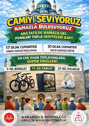 Proje kapsamında çocuklar, yarıyıl tatili boyunca camilere gelerek vakit namazlarına katılacak, her katılımda puan toplayarak çeşitli hediyeler kazanma fırsatı elde edecek. En çok puanı toplayan çocuklar için bisiklet, tablet ve kulaklık gibi birbirinden güzel ödüller hazırlanırken, proje ile hem manevi gelişimin desteklenmesi hem de caminin çocukların hayatında sevilen ve benimsenen bir mekân hâline gelmesi amaçlanıyor.